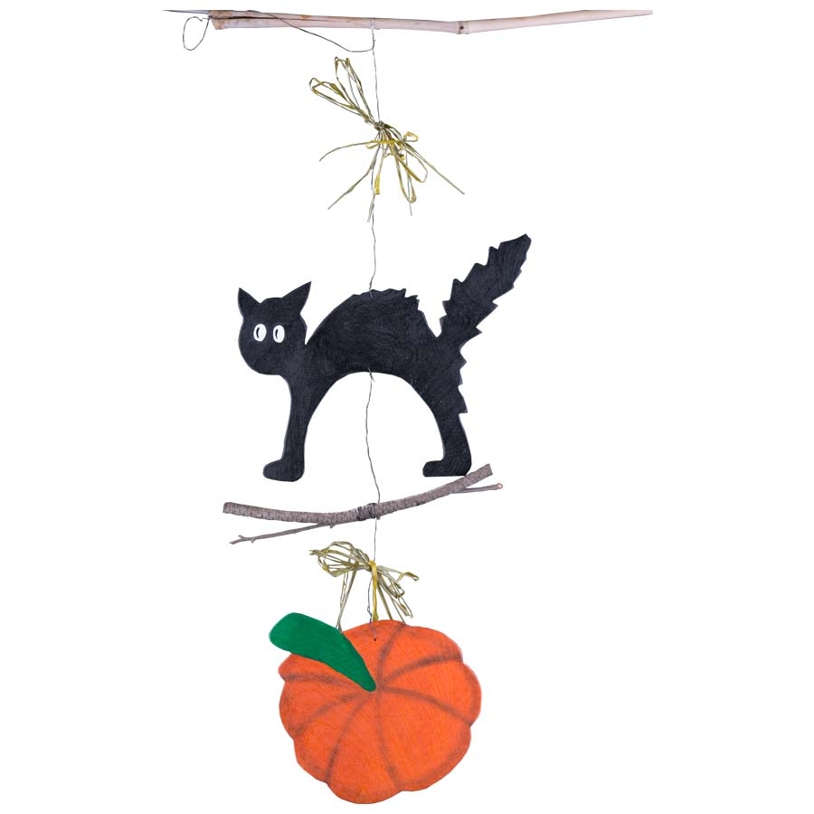Der ausgefallene „Herbst auf Draht“ macht sich in Ihrem Fenster oder an der Tür richtig gut. Der orange Kürbis bildet einen tollen Kontrast zu der schwarzen Katze mit ihren großen Augen. Holen Sie sich die gelungene Deko in Ihre vier Wände.