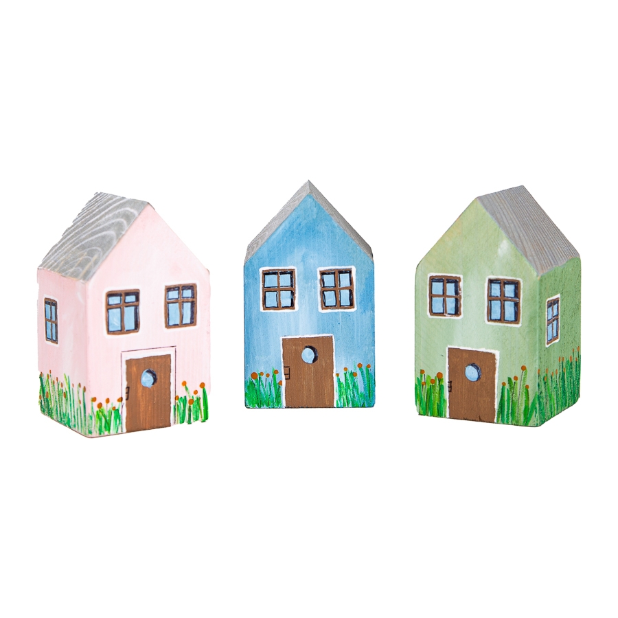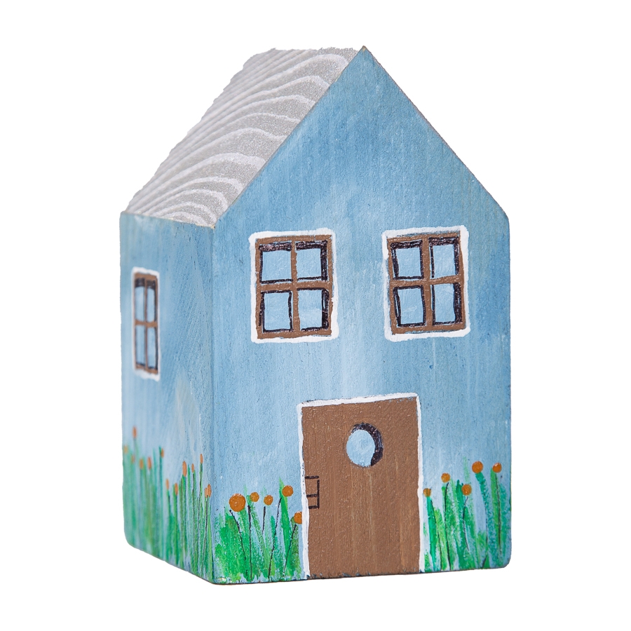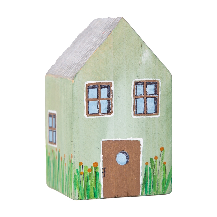 Dieses charmante, handbemalte Holzhaus im skandinavischen Stil ist ein liebevolles Deko-Element für jedes Zuhause.
