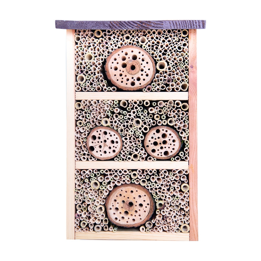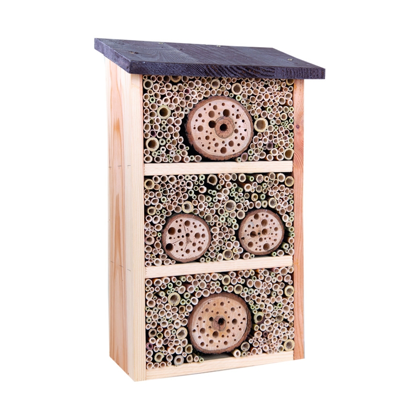 In vielen Gärten sind natürliche Nistplätze immer seltener vorhanden. Unser schönes Insektenhotel bietet speziell Wildbienen eine geeignete Nist - und Überwinterungsgelegenheit. Ers ist ein echter Hingucker in Ihrem Garten, auf der Terasse oder dem Balkon.Das Insektenhotel ist mit Naturmaterialien gefüllt..